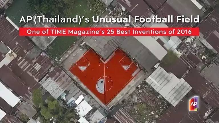 誰(shuí)說(shuō)足球場(chǎng)一定得是長(zhǎng)方形呢?泰國(guó)AP房地產(chǎn)開(kāi)發(fā)商在曼谷空堤縣設(shè)計(jì)了若干個(gè)異形足球場(chǎng),有L形、Z形和U形。這項(xiàng)發(fā)明被美國(guó)《時(shí)代周刊》選為2016年度最偉大的25個(gè)發(fā)明之一。球場(chǎng)的基本元素中線、邊線、球門(mén),一個(gè)都不少。為了保證對(duì)抗的公平性,兩邊場(chǎng)地要對(duì)稱(chēng)。(美通社,2016年12月21日泰國(guó)曼谷)
