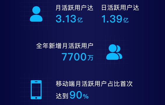 微博發(fā)布2016年第四季度及全年財(cái)報(bào)。截至2016年底,微博月活躍用戶全年凈增長7700萬,增至3.13億,移動端占比達(dá)到90%;日活躍用戶數(shù)也增長到了1.39億。2016年,微博全年總營收同比增長45%,達(dá)43.83億元人民幣,全年凈利潤大幅增長180%。(美通社,2017年2月23日北京)