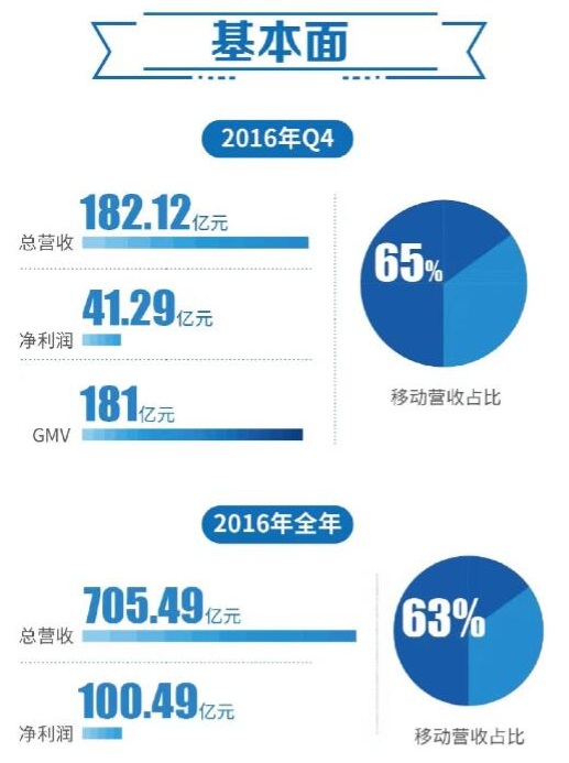 百度今天發(fā)布了2016財年第四季度和全年未經(jīng)審計財報。報告顯示,百度第四季度總營收為人民幣182.12億元,比去年同期下滑2.6%;不計入股權獎勵支出,百度第四季度凈利潤為46.06億元。百度2016財年總營收為705.49億元,比2015財年增長6.3%;凈利潤116.32億元。截至2016年12月底,百度錢包的已激活賬戶數(shù)量達1億個,“百度有錢花”以75%的市場份額繼續(xù)領跑教育信貸領域,百度金融場外資產(chǎn)證券化(ABS)創(chuàng)設規(guī)模超過50億元。(美通社,2017年2月24日北京)