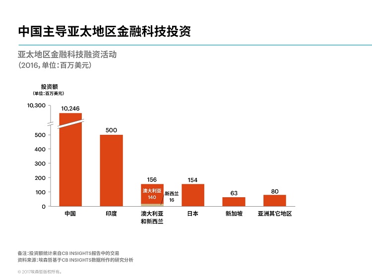 埃森哲研究發(fā)現(xiàn),在中國企業(yè)一系列重量級交易的帶動下,2016年全球金融科技企業(yè)的投資攀升至232億美元,較上年度增長10%。2016年亞太地區(qū)的金融科技融資規(guī)模實現(xiàn)翻番,首次超越北美,中國貢獻了亞太地區(qū)投資總額的九成。中國兩大電子商務(wù)巨頭阿里巴巴和京東成為了主要的金融科技投資者。其中規(guī)模最大的一筆交易發(fā)生在去年四月,阿里巴巴集團旗下的螞蟻金服籌資45億美元。(美通社,2017年3月6日北京)