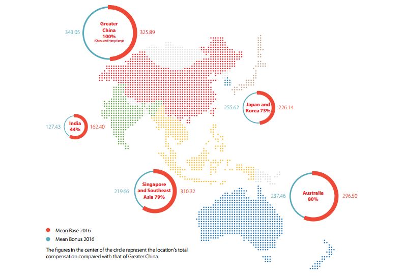 海德思哲的第四版年度《亞太地區(qū)私人資本薪酬調(diào)查》發(fā)現(xiàn),亞太地區(qū)私人資本專(zhuān)業(yè)人士的薪酬上漲趨勢(shì)在2016年有所放緩。近三分之二的受訪(fǎng)者表示,他們的基本薪酬在2016年沒(méi)有發(fā)生變化。與亞太地區(qū)其他地方相比,中國(guó)的薪酬水平最高。中國(guó)內(nèi)地和香港的私人資本專(zhuān)業(yè)人士在整個(gè)亞太地區(qū)中擁有最高的薪酬總額,他們的基本薪酬平均值為325,890美元,獎(jiǎng)金平均值為343,050美元,而印度專(zhuān)業(yè)人士的薪酬水平只能達(dá)到中國(guó)同行的44%。(美通社,2017年4月6日香港)