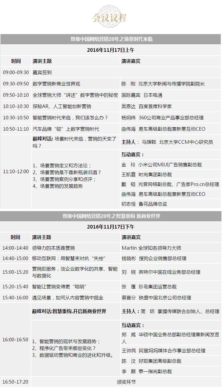 “致敬中國網(wǎng)絡(luò)營銷20年峰會暨第八屆金網(wǎng)獎頒獎盛典”由中國互聯(lián)網(wǎng)協(xié)會網(wǎng)絡(luò)營銷工作委員會主辦,將在11月17日于北京金隅喜來登酒店盛大開幕。(大會專題及報名鏈接:http://pingfen.imcc.org.cn/index.php/api/user/static_peak)作為國內(nèi)網(wǎng)絡(luò)營銷領(lǐng)域最具互聯(lián)網(wǎng)精神和特質(zhì)的營銷盛宴,大會吸引了百度、阿里、騰訊、小米、搜狗、360等一眾互聯(lián)網(wǎng)企業(yè)及大佬的站臺,當(dāng)然還少不了好耶、映盛、Adtime等高逼格數(shù)字營銷機(jī)構(gòu)的身影。