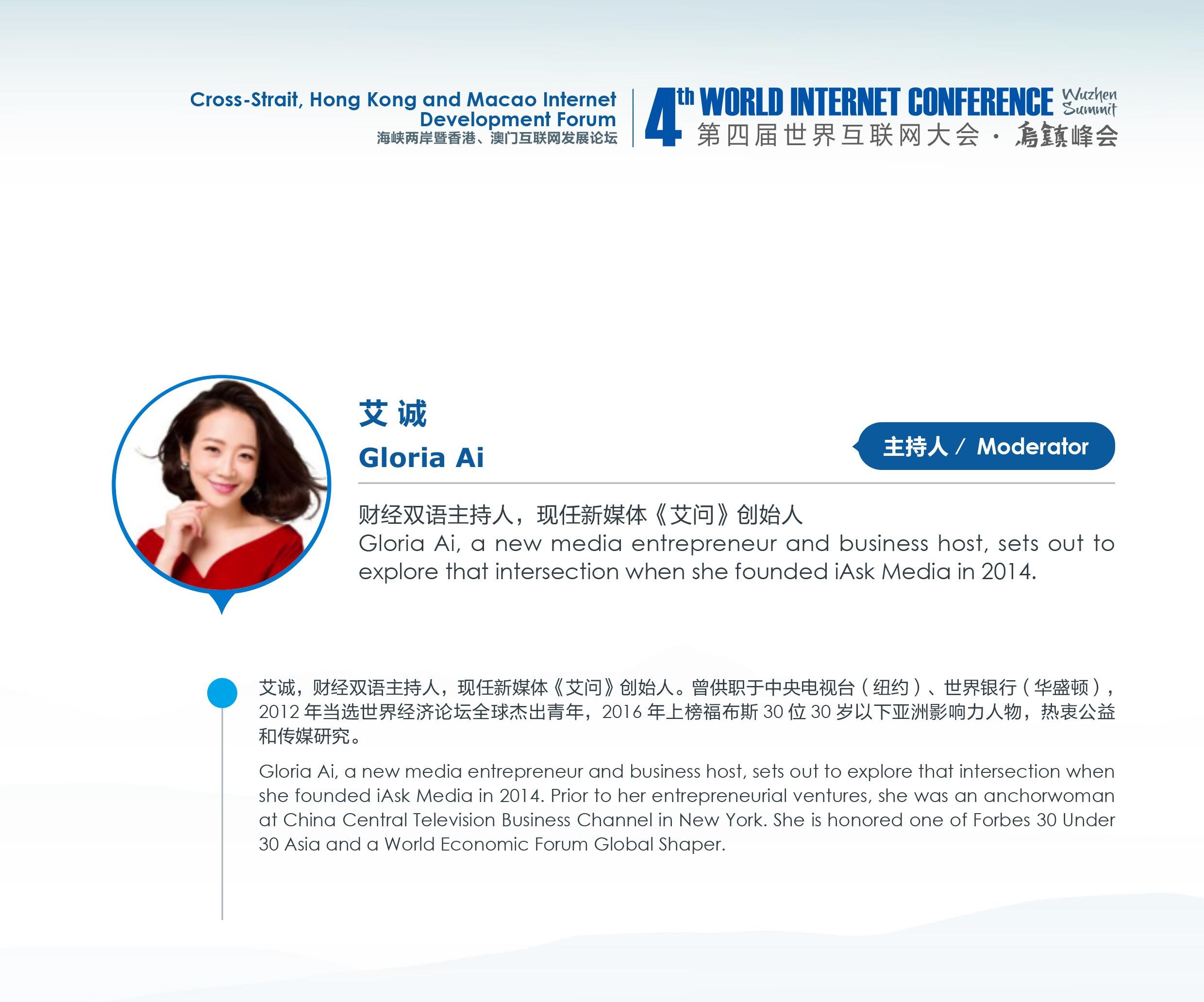 大會(huì)期間,大陸區(qū)域代表主持人艾誠(chéng)將在烏鎮(zhèn)峰會(huì)“創(chuàng)新創(chuàng)業(yè) 共贏未來(lái)”這一議題中與以下與會(huì)嘉賓進(jìn)行精彩對(duì)話。屆時(shí)會(huì)有共同探討青年是互聯(lián)網(wǎng)的未來(lái),如何鼓勵(lì)更多海峽兩岸暨港澳青年投入互聯(lián)網(wǎng)創(chuàng)業(yè)創(chuàng)新事業(yè)。