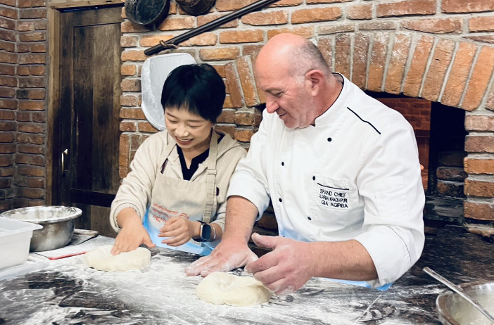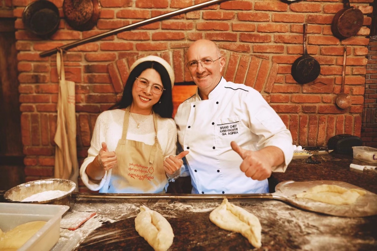 The Chinese influencers had a hands-on experience in making Khachapuri, the process of making Khachapuri is like magic. First, flatten the dough, and then skillfully roll it into a boat shape, which requires great care and patience. Next, cover the "boat" with fresh cheese that tastes mellow and extremely fragrant. The most amazing moment comes when the baked Khachapuri is taken out of the oven. Gently crack a raw egg in the center of the "boat", symbolizing the sun and peace and praying for the safe return of sailors at sea.