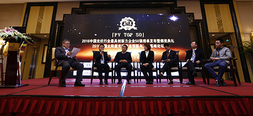 由光伏產(chǎn)業(yè)網(wǎng)主辦、中國智能光伏產(chǎn)業(yè)聯(lián)盟協(xié)辦的「PV TOP 50」2016中國光伏行業(yè)最具創(chuàng)新力企業(yè)50強榜單發(fā)布暨頒獎典禮于2016年11月29日在上海淳大萬麗酒店隆重舉行,2016中國太陽能光伏產(chǎn)業(yè)創(chuàng)新與發(fā)展高峰論壇同期召開。