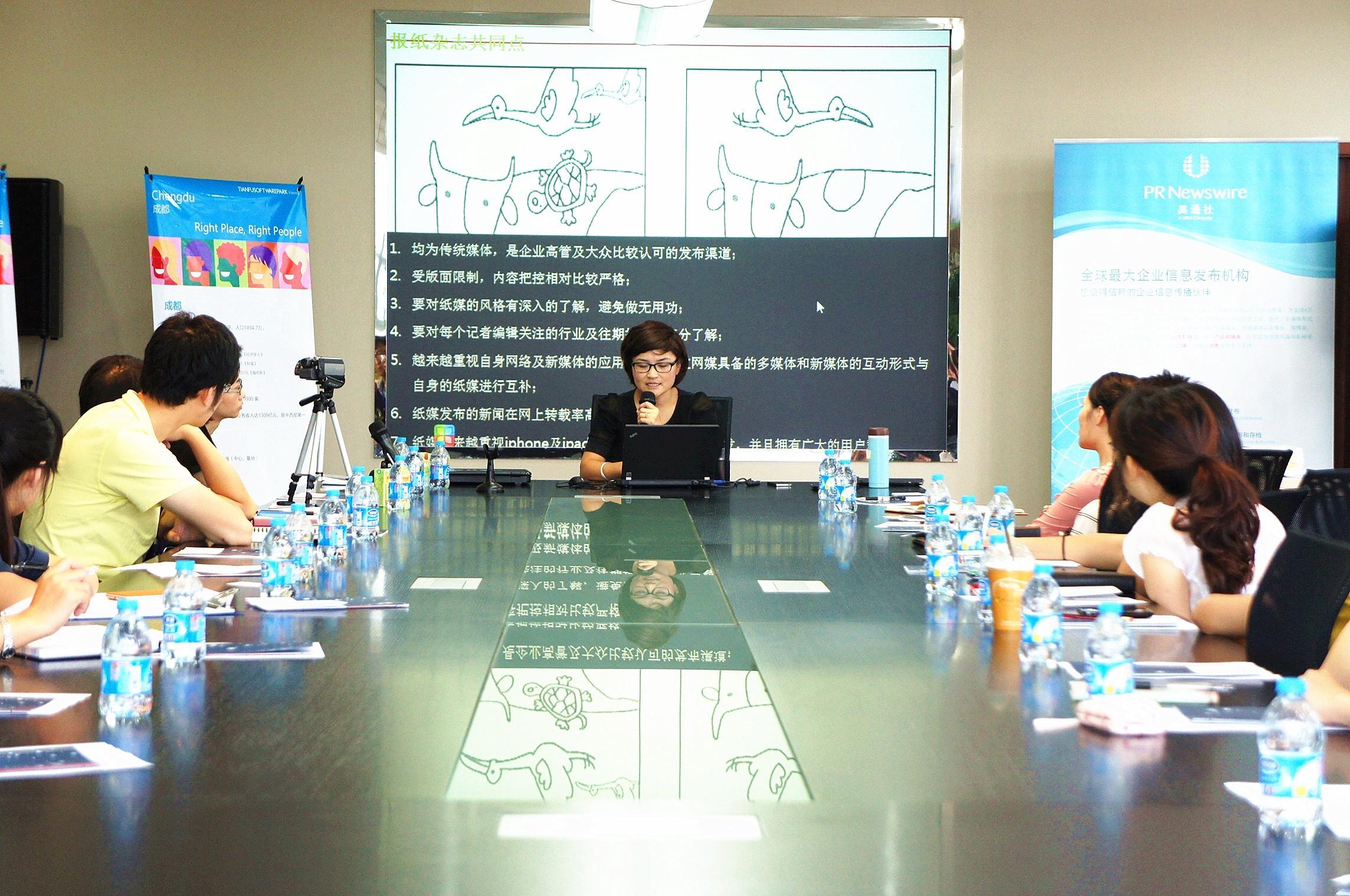 成都2012年7月16日電 /美通社亞洲/ -- 7月12日,由美通社攜手天府軟件園共同打造的“新傳播茶會(huì)”在成都天府軟件園C區(qū)成功舉辦。此次以“企業(yè)傳播與推廣”為主題的茶會(huì)吸引了近五十家企業(yè)的代表參加,他們包括吉?jiǎng)倏萍肌部扑架浖⒚阑每萍肌⑷A邁通信、中智、飛魚星科技、木瓜移動(dòng)等。演講嘉賓美通社媒體關(guān)系總監(jiān)楊麗娜、IT168和泡泡網(wǎng)成都站負(fù)責(zé)人劉斌分別就企業(yè)傳播技巧、危機(jī)公關(guān)、互聯(lián)網(wǎng)推廣與營銷等話題向與會(huì)嘉賓進(jìn)行了分享。