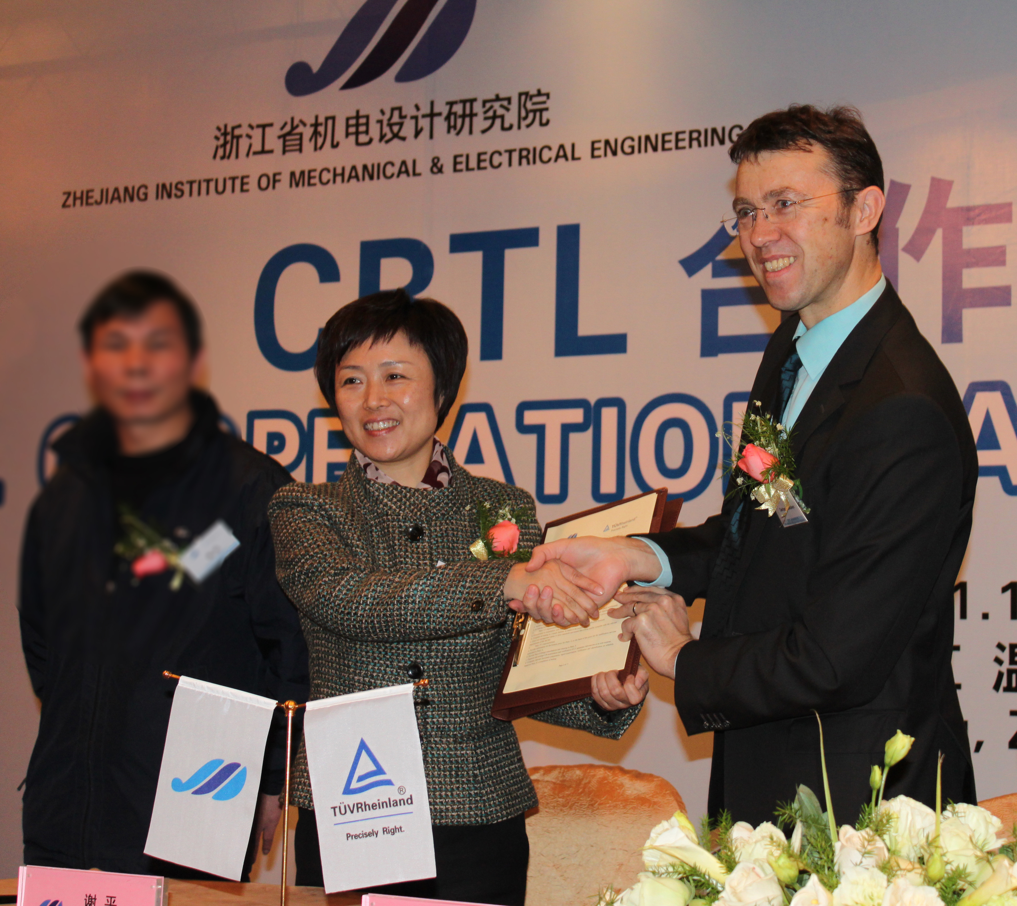 此項 CBTL 合作受益于雙方在過去長達十多年之久的良好合作。在浙江地區(qū)建立低壓電器 CB 實驗室,必將能第一時間快速響應(yīng)江浙地區(qū)客戶的需求。同時,作為德國萊茵集團在國內(nèi)的首家低壓電器 CB 實驗室,將致力于為中國的客戶進軍國際低壓電器產(chǎn)品市場提供權(quán)威的資訊、標準及檢測等服務(wù)。基于此項目合作的重要意義,此次 CBTL 合作啟動儀式得到了德國萊茵集團、浙江省機電設(shè)計研究院高層領(lǐng)導(dǎo)的重視并傾情參與。列席會議的重要代表有德國萊茵集團大中華區(qū)副總裁呂伯肯先生、浙江省機電設(shè)計研究院董事長謝平女士。謝董事長對雙方的合作表示了祝賀,并在會上表示:“浙江省機電設(shè)計研究院很高興能與全球領(lǐng)先的技術(shù)檢測和認證服務(wù)公司德國萊茵集團達成此項低壓電器產(chǎn)品領(lǐng)域檢測的合作,我們希望基于雙方的友好合作和聯(lián)手開拓,為中國低壓電器產(chǎn)品走向世界貢獻力量。”同時,德國萊茵集團大中華區(qū)副總裁呂伯肯先生亦在他的致辭中表示:“我們很感謝能擁有如浙江省機電設(shè)計研究院這樣實力強大的中國當?shù)睾献骰锇椋恢币詠硇刨嚥⑴c我們攜手在相關(guān)技術(shù)領(lǐng)域互鑒互塑,致力于長期的共同發(fā)展,推進中國企業(yè)的出口業(yè)務(wù)。”