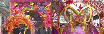 另外,為了給市民帶來新春好意頭,由海港城海運(yùn)大廈正門一直至五支旗桿的海旁,特別設(shè)置了一條“百尺喜蝶長(zhǎng)廊”,內(nèi)有八道分別代表愛情、家庭、事業(yè)、學(xué)業(yè)、健康、財(cái)運(yùn)、幸福、好運(yùn)等寓意吉祥的拱門,讓大家隨意穿梭走過,為新一年帶來好運(yùn),增添喜氣。