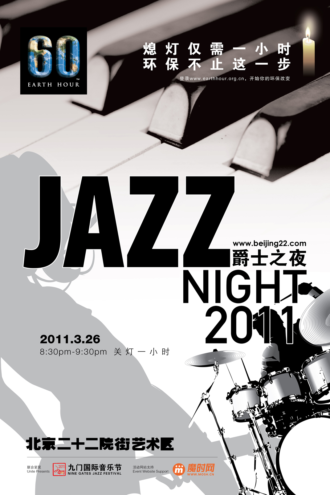 3月26日晚20點(diǎn)30分,隨著二十二院街藝術(shù)區(qū)外景照明燈光的關(guān)閉,在美麗的夜色中,由九門國際音樂節(jié)獨(dú)家傾力呈現(xiàn)的不插電爵士演出拉開了帷幕。由中國爵士鋼琴領(lǐng)軍人夏佳,著名貝斯手張柯,以及優(yōu)秀打擊樂演奏家貝貝組成的夏佳三重奏點(diǎn)燃了到場爵士樂迷們的激情。九門國際音樂節(jié)立志于打造最具國際影響力的音樂節(jié),倡導(dǎo)利用最純粹的音樂激發(fā)人們對簡單幸福生活的向往,也為環(huán)保事業(yè)出一份力。演出當(dāng)晚吸引了500余人前來觀看;大家手捧蠟燭,在浪漫的氣氛和悠揚(yáng)的爵士樂中度過了一個難忘的夜晚。記者在現(xiàn)場采訪到了一些觀眾,大家都表示:現(xiàn)代人的娛樂生活都太依靠電能了,電視、電腦、網(wǎng)絡(luò)、各種家用電器;沒想到在不用電的情況下,也能感受到快樂與溫馨。