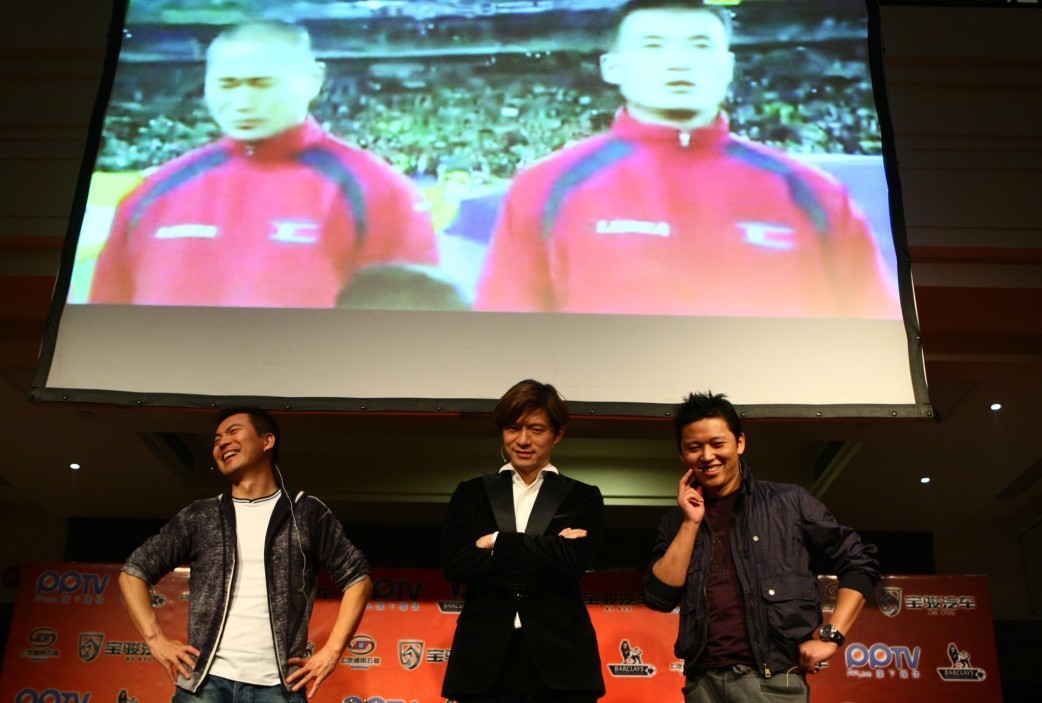 上海2011年4月18日電 /美通社亞洲/ -- 17日晚,PPTV 網(wǎng)絡(luò)電視直播英超賽事第2場(chǎng)地面活動(dòng)在上海一家別具情調(diào)的歐式酒吧正式開煲。直播經(jīng)驗(yàn)豐富的 PPTV 網(wǎng)絡(luò)電視首發(fā)強(qiáng)勢(shì)組合“蟹皇粥”,黃健翔、謝暉、周亮三位著名解說主持人亮相當(dāng)晚阿森納對(duì)陣?yán)锲株?duì)的比賽解說中。令人意外的是,在當(dāng)晚的解說中,一組來自民間自發(fā)組成的解說隊(duì) -- “菜泡飯”,公開踢館,活動(dòng)現(xiàn)場(chǎng)一片嘩然,人氣爆棚,三位解說主播表示會(huì)積極接戰(zhàn)。(PPTV 網(wǎng)絡(luò)電視英超直播地址:http://yingchao.pptv.com/。)