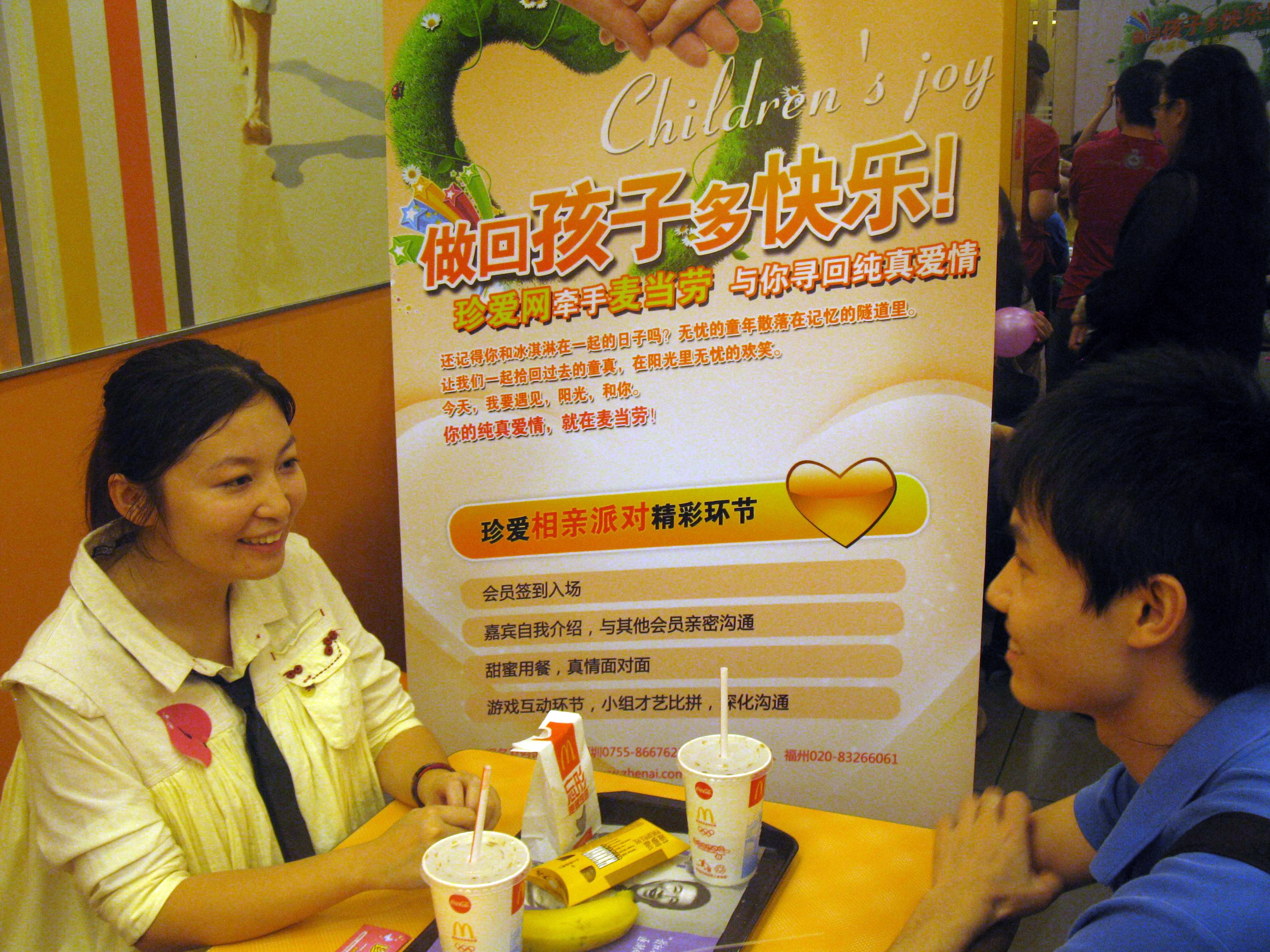 本次活動覆蓋了深圳,福州,廈門,中山這4個城市共143間麥當(dāng)勞餐廳。另外,珍愛網(wǎng)與麥當(dāng)勞將在這4個城市指定的麥當(dāng)勞餐廳里舉辦相親會活動,將單身男女聚集在麥當(dāng)勞餐廳。這對會員來說這無疑是一個好消息。