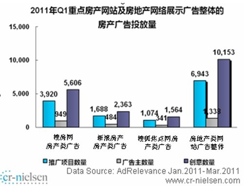 北京2011年5月4日電 /美通社亞洲/ -- CR-Nielsen(尼爾森互聯(lián)網(wǎng)研究)《2011年中國房地產(chǎn)網(wǎng)絡(luò)展示廣告市場研究項(xiàng)目報(bào)告》顯示,2011年中國房地產(chǎn)網(wǎng)絡(luò)展示廣告市場第一季度與去年同期相比呈增長態(tài)勢。2011年 Q1搜房網(wǎng)房產(chǎn)類網(wǎng)絡(luò)展示廣告投放量同比平穩(wěn)增長。與去年同期相比,2011年 Q1搜房網(wǎng)房產(chǎn)廣告推廣項(xiàng)目數(shù)同比增長91.7%,增長較快。