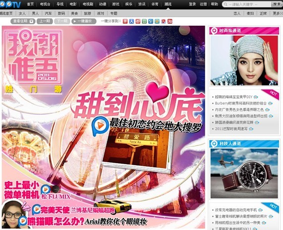 上海2011年5月6日電 /美通社亞洲/ -- 今日,PPTV 網(wǎng)絡(luò)電視(PPLive 旗下媒體,www.pptv.com)正式推出潮流頻道(http://in.pptv.com),以潮流專區(qū)、分類通道及封面化的潮流直播形式打造潮流視頻新模式,打破櫥窗式的視頻網(wǎng)站結(jié)構(gòu),第一時(shí)間提供世界各大時(shí)尚娛樂潮流資訊。專業(yè)人士稱,PPTV 網(wǎng)絡(luò)電視此舉將引領(lǐng)網(wǎng)絡(luò)電視聚合型潮流新趨勢。