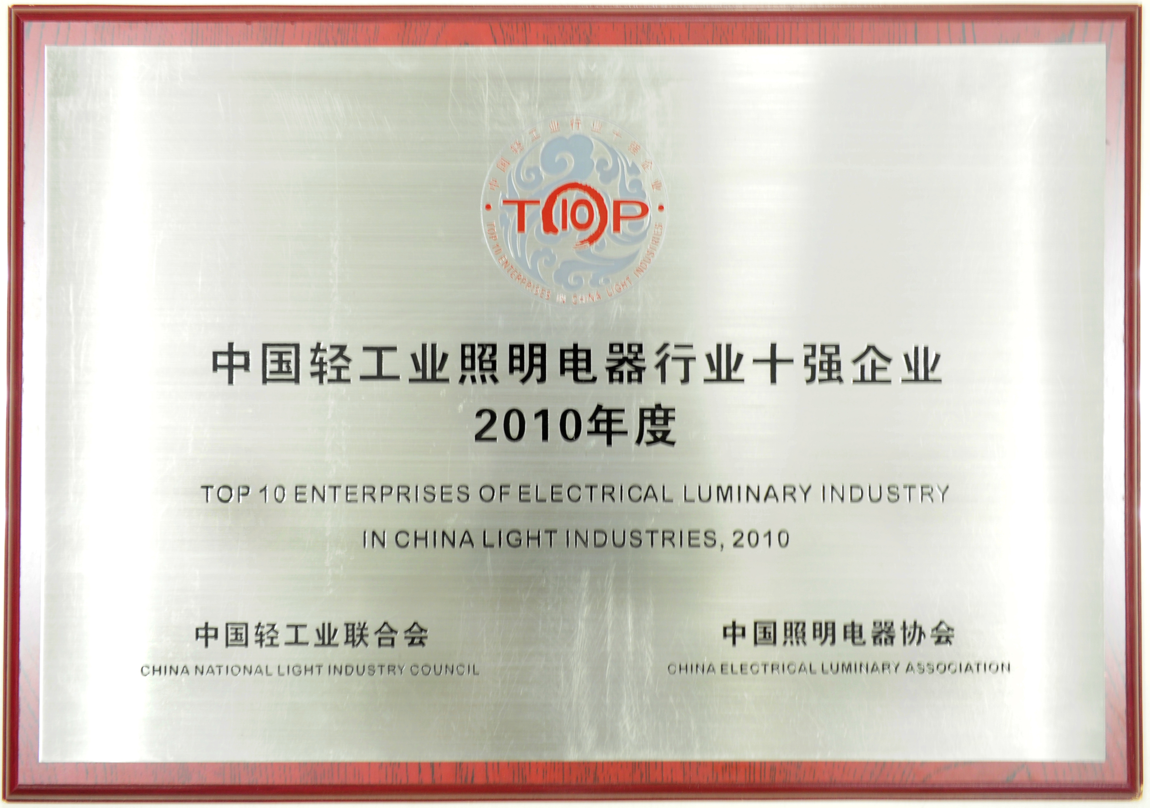 2010年,26家行業(yè)協(xié)會的29個行業(yè)參與此次評價工作,包括照明電器、自行車、五金、鐘表、玩具等行業(yè)。經(jīng)各行業(yè)協(xié)會確認,中國輕工業(yè)聯(lián)合會終審,共有雷士照明等企業(yè)榮登“2010年度中國輕工業(yè)十強企業(yè)”榜單。