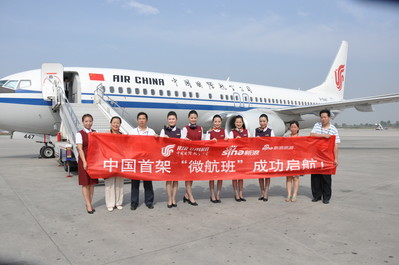 北京2011年7月1日電 /美通社亞洲/ -- 今日上午6:50,包括“月亮美女”黃奕在內(nèi)的百余名“微航客”乘坐由國航發(fā)起的中國首架“微航班”正式從北京啟航飛赴西安助威世界園藝博覽會(huì)。籌備了一個(gè)月之久,中國民航史上第一個(gè)“微航班”終于成功起飛。