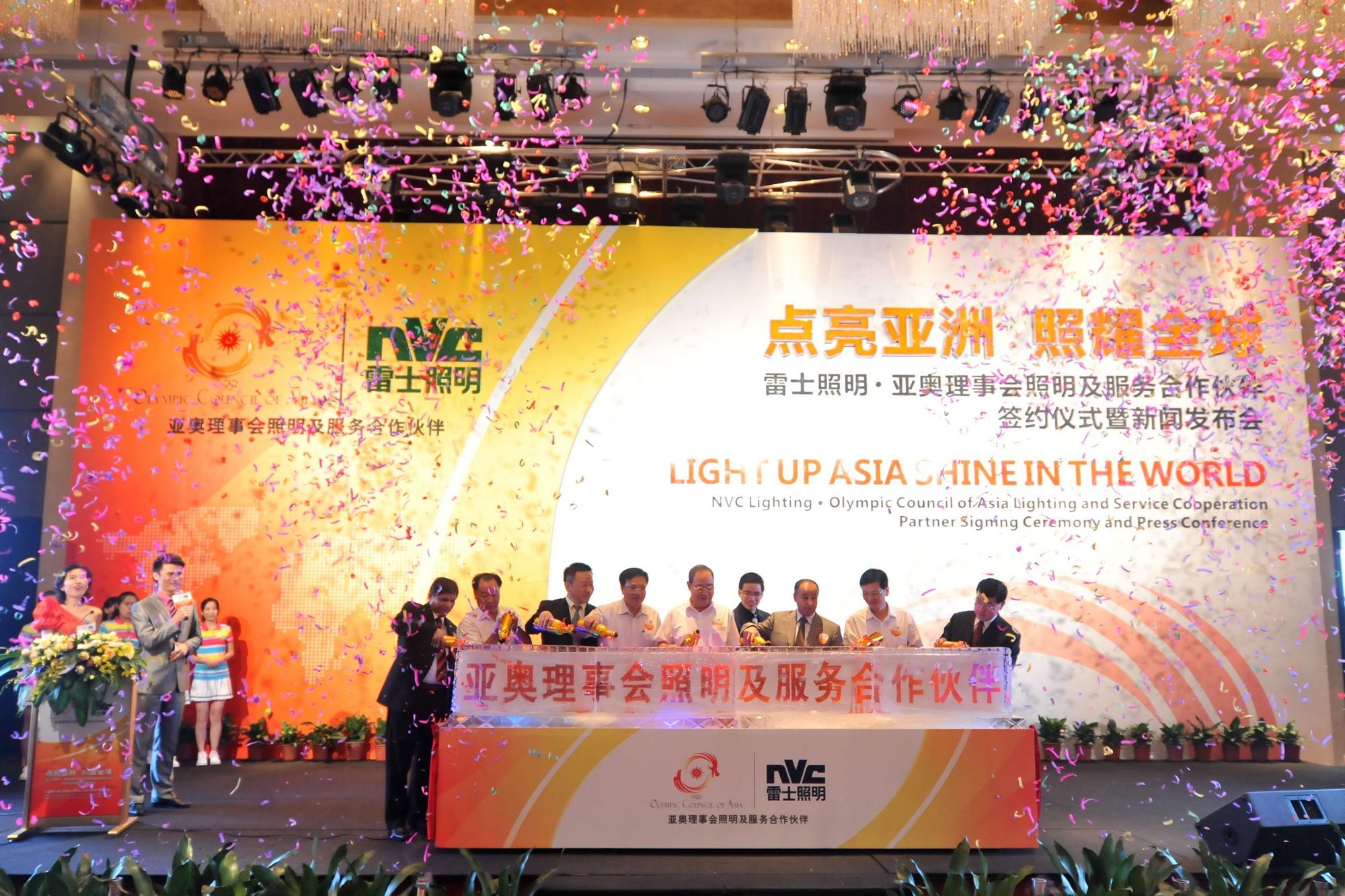 因此,此次簽約活動(dòng)引起各界的高度重視和支持。亞奧理事會(huì)總干事侯賽因,廣東省人民政府副省長(zhǎng)佟星,惠州市委副書記、市長(zhǎng)李汝求,廣東省政府副秘書長(zhǎng)林英,惠州市副市長(zhǎng)李選民等省市領(lǐng)導(dǎo),以及廣州亞組委、天津東亞運(yùn)動(dòng)會(huì)、沈陽全運(yùn)會(huì)、青島世園會(huì)、河南農(nóng)運(yùn)會(huì)等相關(guān)部門領(lǐng)導(dǎo),雷士照明董事長(zhǎng)吳長(zhǎng)江等嘉賓出席了當(dāng)天的簽約儀式。