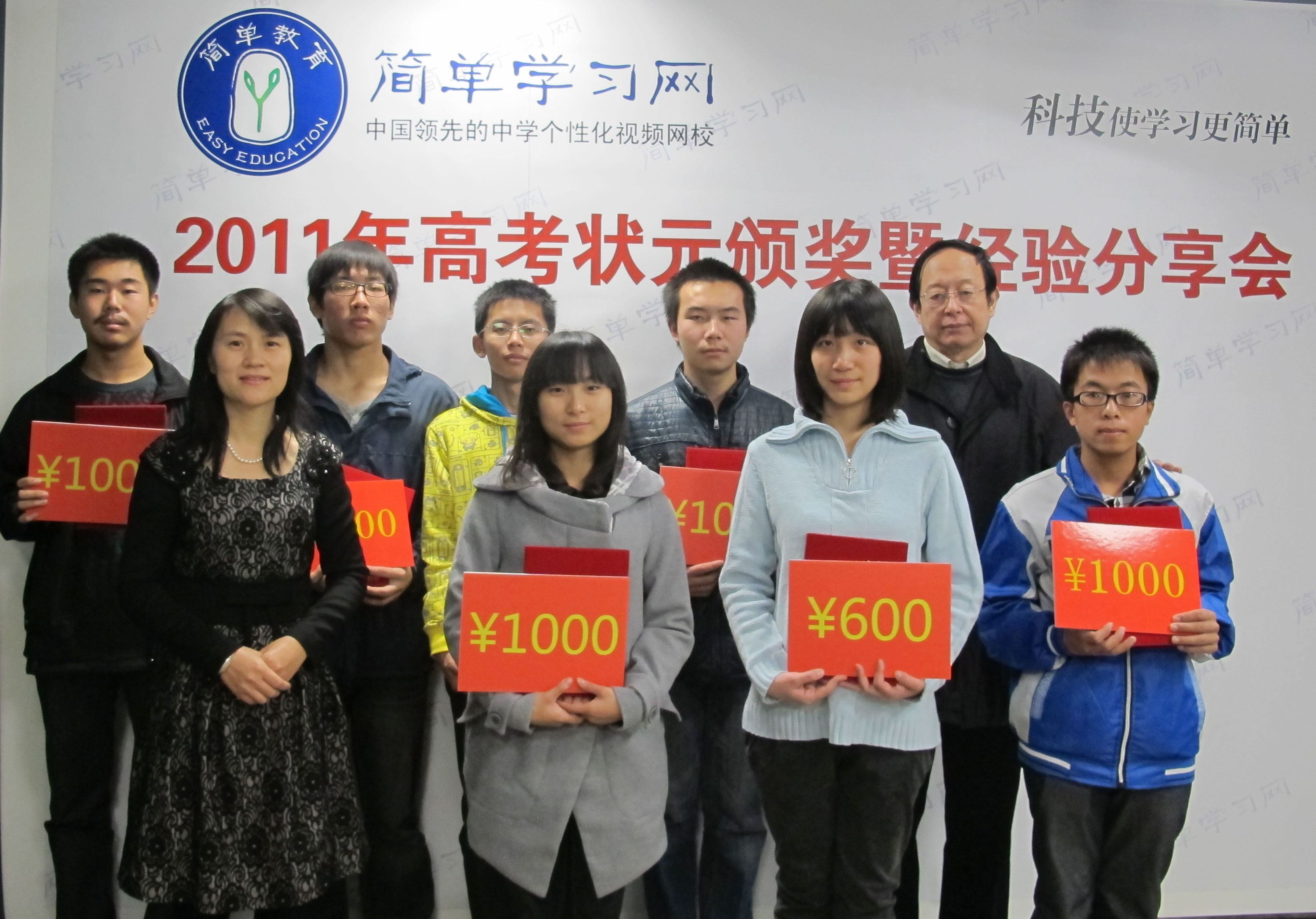 北京2011年10月31日電 /美通社亞洲/ -- 2011年10月30日上午10點,由簡單學習網(wǎng)主辦的“201年高考狀元頒獎暨經(jīng)驗分享會”在簡單學習網(wǎng)北京總部拉開帷幕。語文特級教師王大績老師、簡單學習網(wǎng)教學總監(jiān)曾萍出席了頒獎典禮,為11名高考狀元、優(yōu)秀學員頒獎,整個頒獎典禮通過網(wǎng)絡在線直播,并通過簡單學習網(wǎng)新浪微博、騰訊微博等同步直播,數(shù)千名全國各地學員在線觀看了本次頒獎典禮。