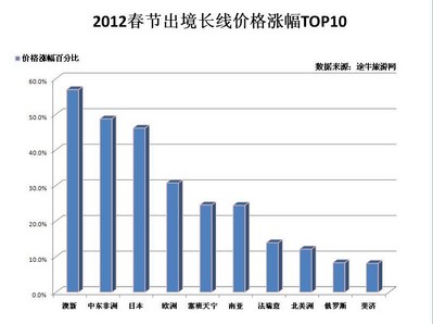 途牛旅游網(wǎng)監(jiān)測數(shù)據(jù)顯示,東南亞等出境短線方向圣誕、元旦線路價格漲幅并不明顯,較11月報價上漲300-1000元不等,如上海出發(fā)至菲律賓長灘島的3晚4日圣誕元旦線路,12月初報價為3600元左右,12月底上漲至4100元左右,漲幅為12.2%;春節(jié)線路中,出境長線價格上漲略高于出境短線,漲幅在20%左右,如上海出發(fā)的“澳大利亞-大堡礁8日游”春節(jié)線路12月報價17000元左右,至1月底漲至22000元左右,漲幅在23%左右;非洲、中東、南亞等高端線路方向,漲幅更為明顯,如中東方向的迪拜6日游奢華線路,春節(jié)報價在9200元至40000元不等,較淡季上漲30%-40%左右。
