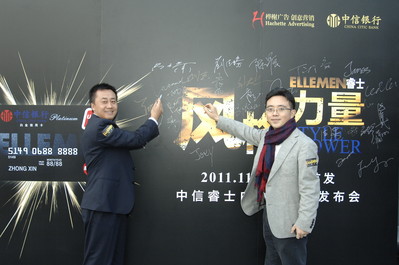 上海和深圳2011年11月29日電 /美通社亞洲/ -- 由高端男性雜志《ELLE MEN 睿士》攜手中信銀行共同舉辦的“風(fēng)格力量 Style Power”中信睿士白金信用卡在上海和深圳兩地同步首發(fā)。樺榭中國董事總經(jīng)理艾彌爾先生以及中信銀行信用卡中心總裁助理呂天貴先生出席,共同宣布中國最有“范兒”白金信用卡的誕生。