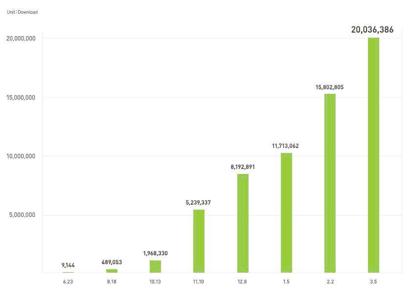 結(jié)果是在下載量達(dá)到1500萬(wàn)后僅一個(gè)月的時(shí)間里再增500萬(wàn),自服務(wù)開(kāi)始后8個(gè)月內(nèi),累計(jì)下載量達(dá)到了2000萬(wàn)次。