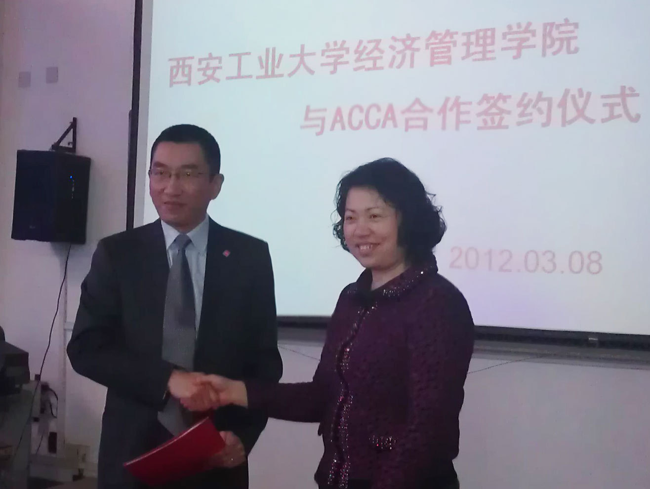 北京2012年3月13日電 /美通社亞洲/ -- 3月8日下午,“西安工業(yè)大學(xué)經(jīng)濟管理學(xué)院與ACCA合作簽約儀式”在西安工業(yè)大學(xué)經(jīng)濟管理學(xué)院舉行。ACCA北京代表處首席代表于翔天先生與經(jīng)濟管理學(xué)院院長李純青教授、會計學(xué)系主任史璇副教授等進行了親切的會談并簽署了正式合作協(xié)議。根據(jù)協(xié)議,經(jīng)濟管理學(xué)院將ACCA國際財會資格課程嵌入到會計學(xué)專業(yè)本科教學(xué)中,計劃于2012年開始招收第一期ACCA方向班學(xué)員,培養(yǎng)緊缺的國際化高級財會人才。