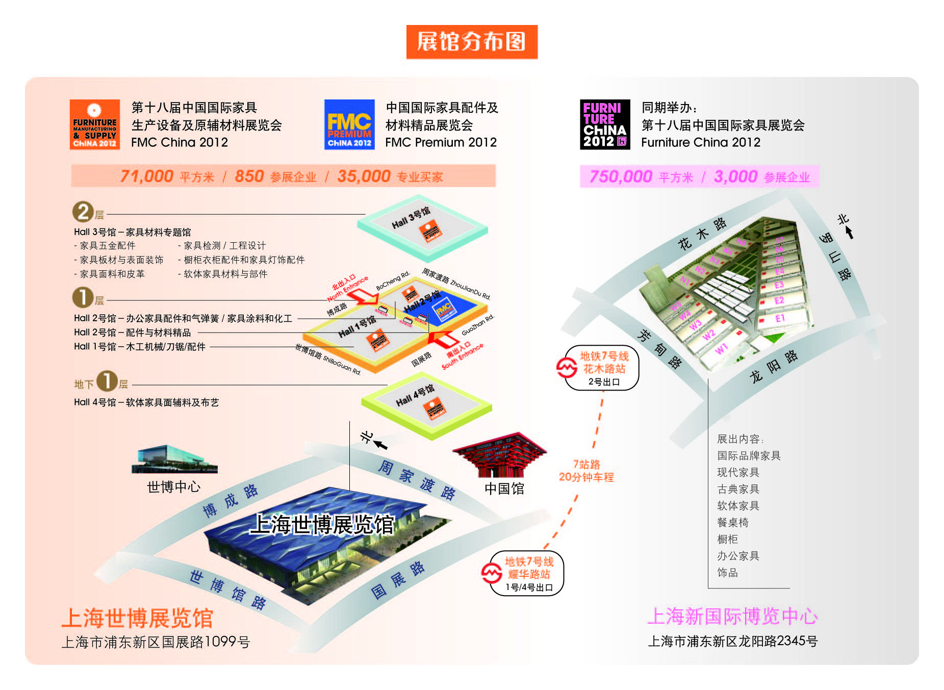 2012年展館分類更細(xì)致專業(yè),4大展館分別位于世博展覽館3個(gè)樓層: