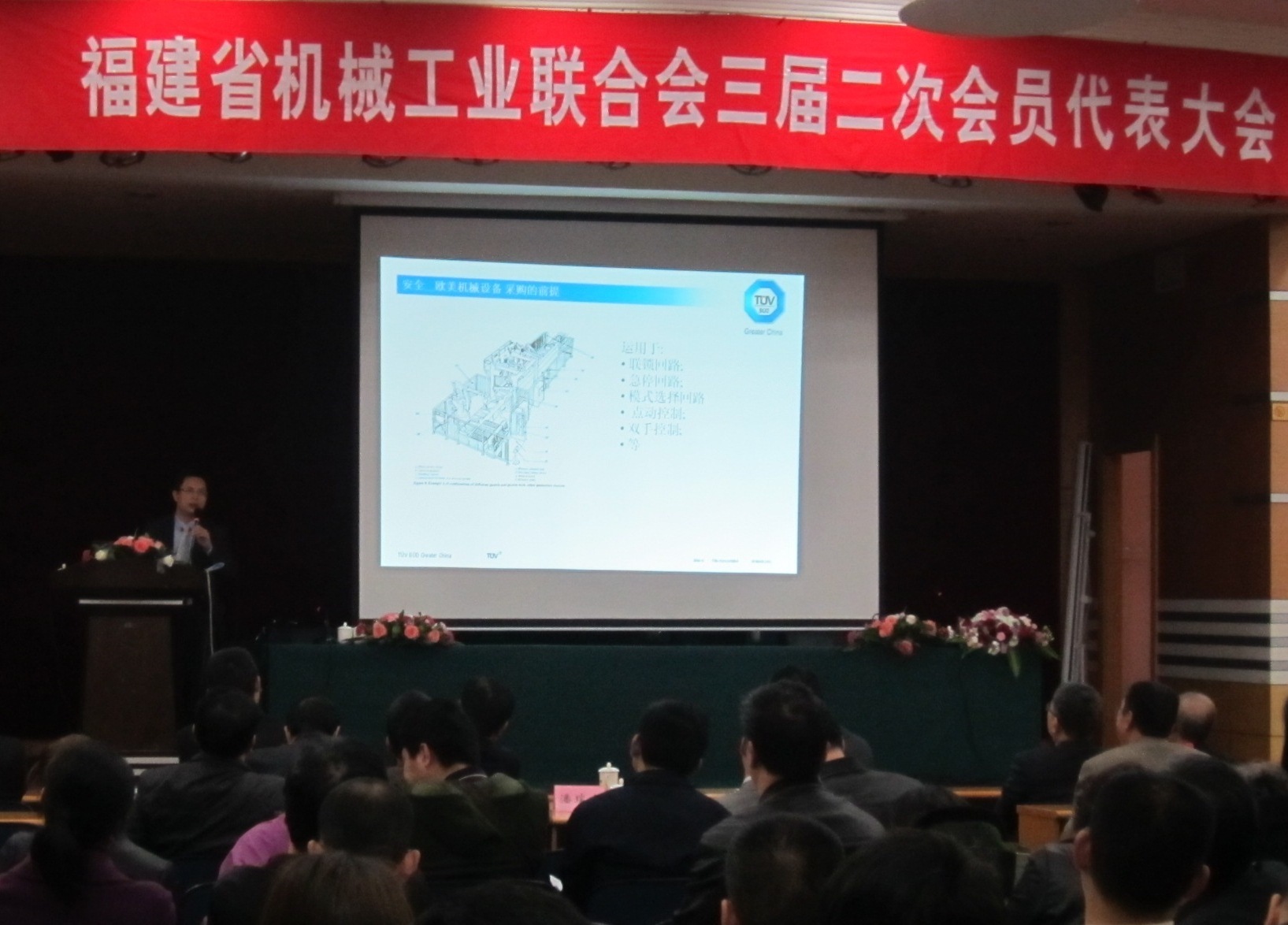 福州2012年4月1日電 /美通社亞洲/ -- 近日,由福建省經(jīng)濟(jì)貿(mào)易委員會,福建省財(cái)政廳主辦的福建機(jī)械工業(yè)轉(zhuǎn)型升級講座暨福建省機(jī)械工業(yè)聯(lián)合三屆二次會員大會在福州隆重召開,TUV 南德意志集團(tuán)應(yīng)邀出席此次大會并做了有關(guān)機(jī)械設(shè)備出口歐美安全方面的發(fā)言,為福建省機(jī)械工業(yè)企業(yè)了解歐美有關(guān)機(jī)械設(shè)備安全法規(guī),機(jī)械設(shè)計(jì)安全性能,提升質(zhì)量,促進(jìn)產(chǎn)品向高端化發(fā)展提供了指導(dǎo)性的建議,同時(shí)為出口企業(yè)更好地突破貿(mào)易壁壘,獲取通往歐美等全球主要市場的認(rèn)證,走向全球市場提供了有力的技術(shù)保障。