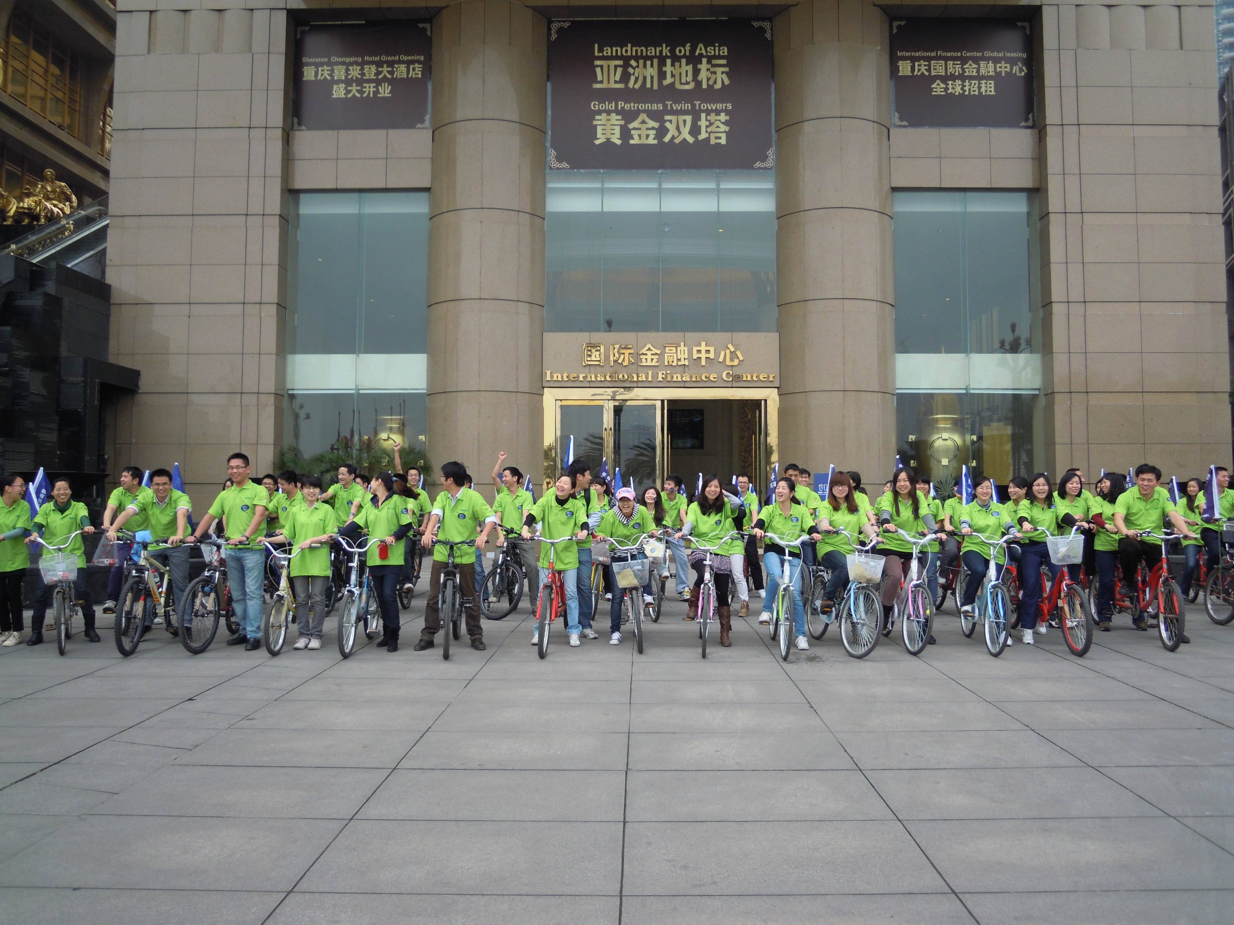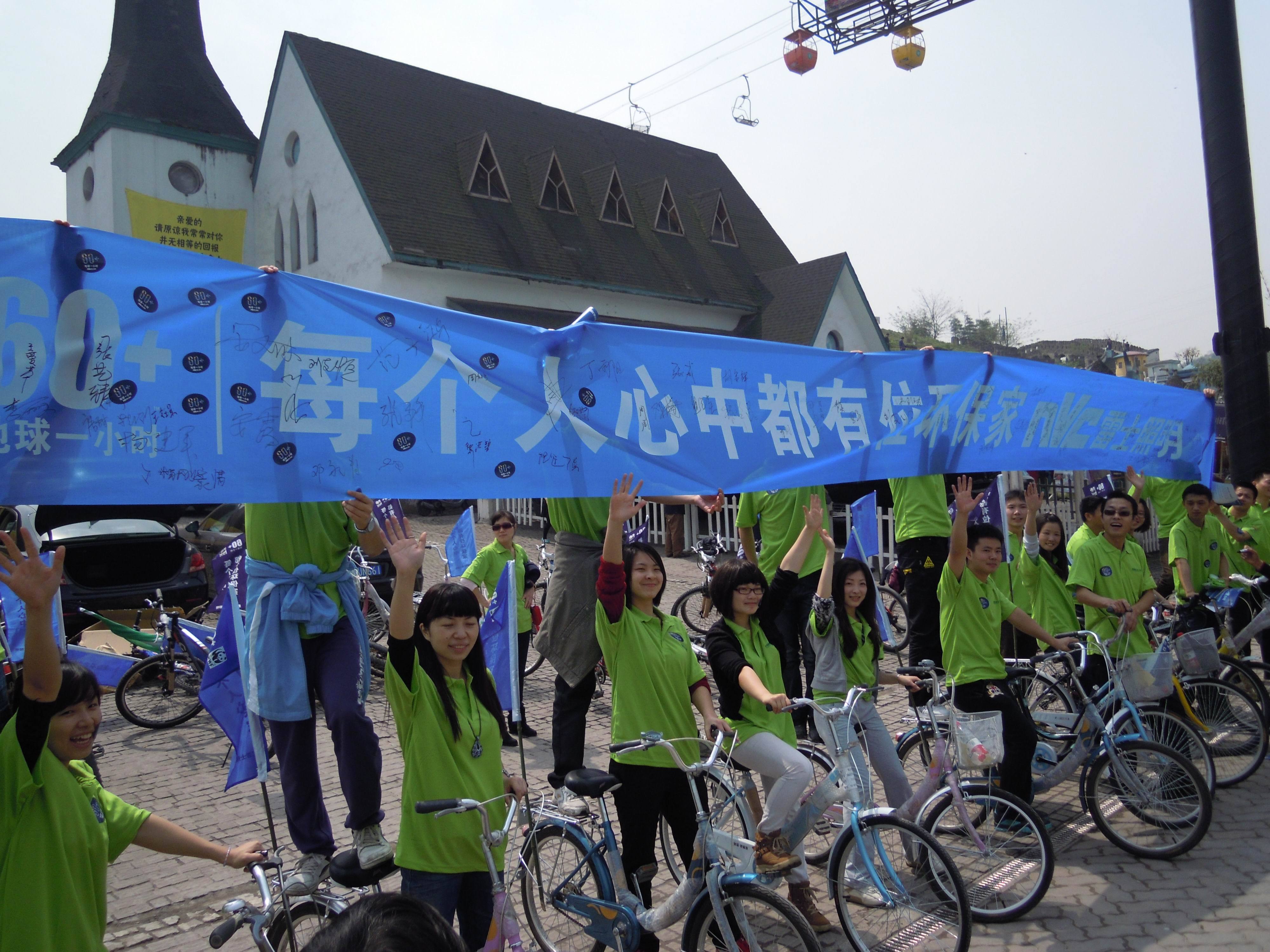 上午11點整,志愿者騎行隊伍從國際金融中心出發(fā),騎行至洋人街景區(qū),醒目的雷士照明綠色T恤、隨風飄揚的“地球一小時”活動大旗,雷士照明以低碳出行新方式宣傳其環(huán)保行動。