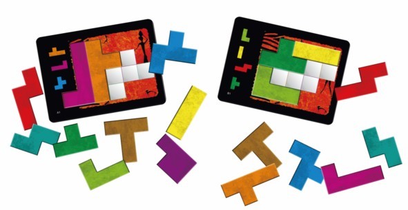 《烏邦果》mini版中內(nèi)含形狀各異、色彩鮮艷的拼圖板塊以及不同難度的謎題卡,玩家在游戲中的目標(biāo)就是:用規(guī)定的拼圖塊,拼滿(mǎn)謎題卡的空白形狀,不留任何空白。這一看似簡(jiǎn)單的游戲目標(biāo)卻經(jīng)常讓人手忙腳亂。