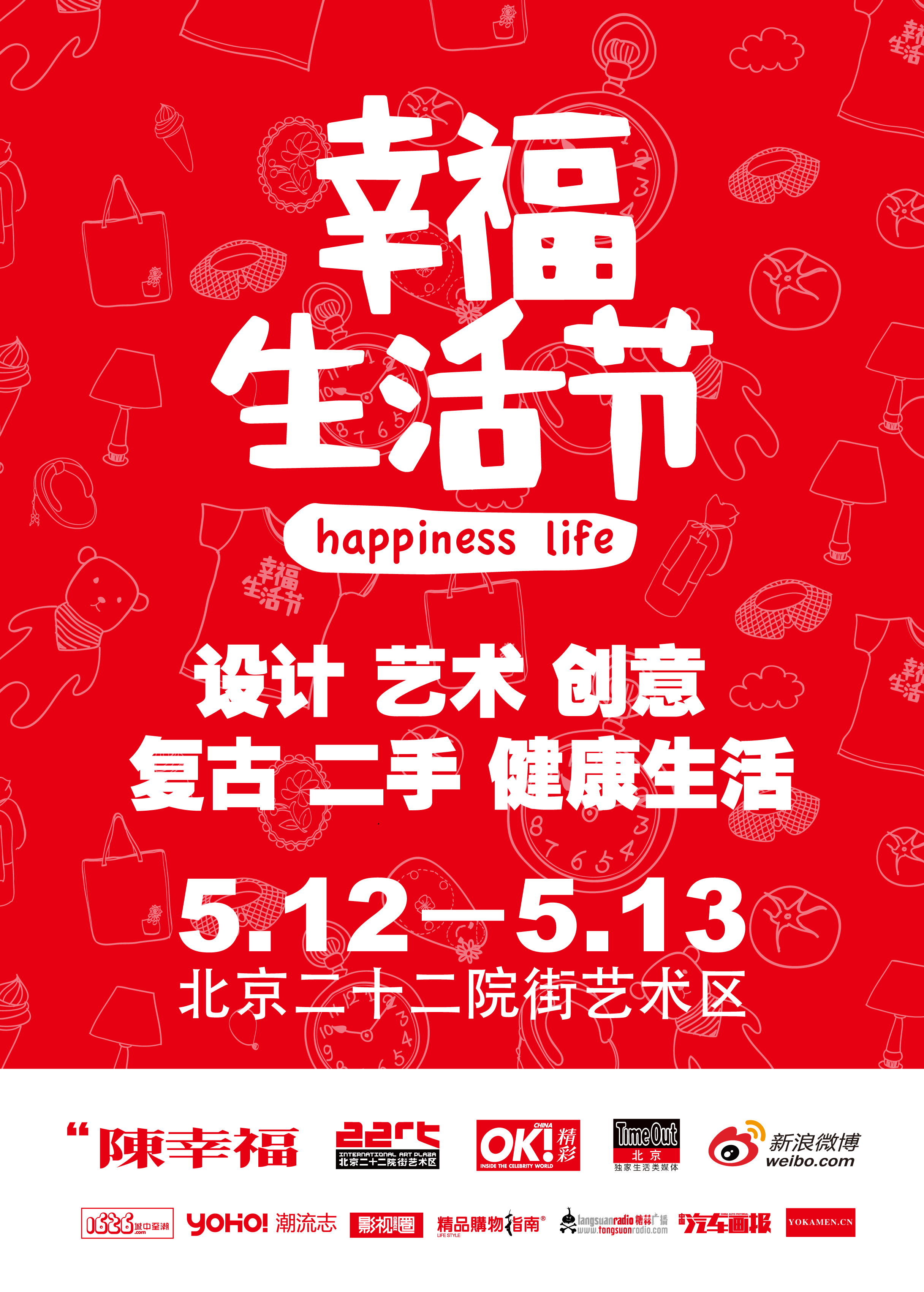 北京2012年5月10日電 /美通社亞洲/ -- 北京二十二院街?jǐn)y手元老級創(chuàng)意品牌“陳幸福” 工作室將在5月12日、13日共同舉辦新類型生活方式戶外活動——幸福生活節(jié),邀請觀眾體會搭設(shè)北京市中心的陽光藝術(shù)品牌集會。
