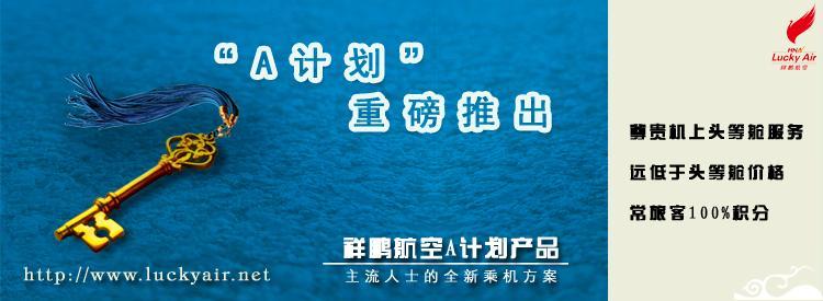 “A計(jì)劃”產(chǎn)品是祥鵬航空官網(wǎng)推出的另一項(xiàng)超值服務(wù)產(chǎn)品。只要是標(biāo)注有“A計(jì)劃”字樣的機(jī)票,旅客均能以遠(yuǎn)低于頭等艙的銷(xiāo)售價(jià)格購(gòu)買(mǎi),并享受切實(shí)的頭等艙待遇。如尊享頭等艙座位、頭等艙餐食及相應(yīng)的頭等艙空中服務(wù),海航金鵬俱樂(lè)部會(huì)員積分按照經(jīng)濟(jì)艙的100%標(biāo)準(zhǔn)累積計(jì)算等,是真正的價(jià)格有折扣,服務(wù)有升值。
