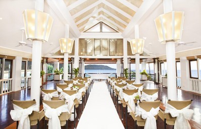 以浪漫之名取名為“戀人婚禮堂”,該禮堂可以眺望關(guān)島最美麗的情人崖,這座婚禮堂有環(huán)繞180度的通透視野,挑高的白色天花板與大理石地面相襯,行程開闊的空間感。正對情人崖,因而以西班牙“情人”名字命名。