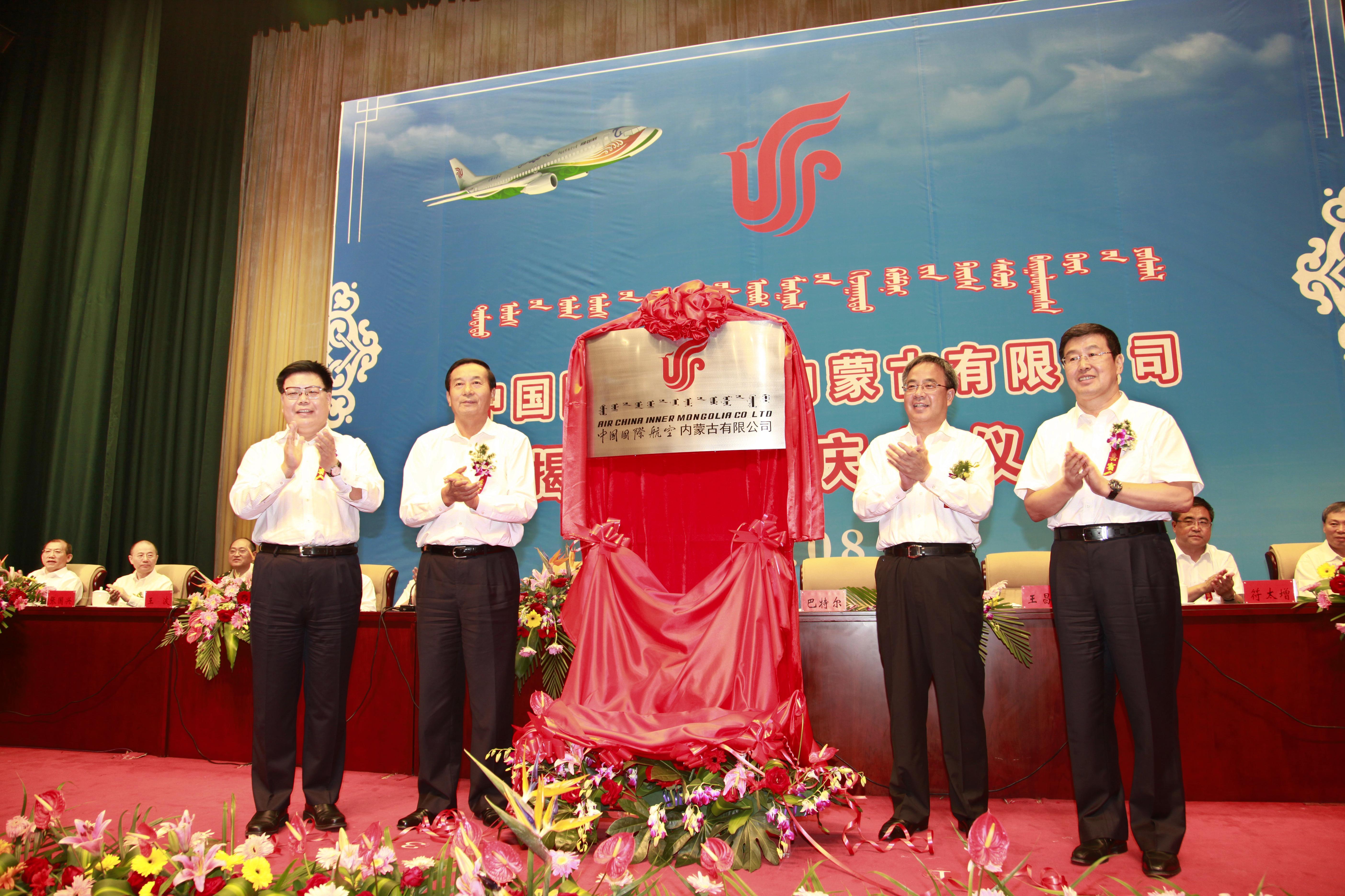 北京2012年8月27日電 /美通社亞洲/ -- 2012年8月23日,中國國際航空內(nèi)蒙古有限公司(中文簡稱國航內(nèi)蒙古公司,英文簡稱Air China Inner Mongolia)在內(nèi)蒙古自治區(qū)首府呼和浩特揭牌成立。內(nèi)蒙古自治區(qū)當(dāng)?shù)仡I(lǐng)導(dǎo)以及中國民用航空局副局長夏興華、中國航空集團(tuán)總經(jīng)理王昌順為中國國際航空內(nèi)蒙古有限公司揭牌。中國民用航空局副局長夏興華、中國航空集團(tuán)總經(jīng)理王昌順、內(nèi)蒙古自治區(qū)副主席王波、中國國際航空內(nèi)蒙古有限公司籌備組組長曹光福在揭牌成立儀式上致辭。內(nèi)蒙古自治區(qū)黨委副書記李佳、內(nèi)蒙古自治區(qū)黨委常委、秘書長符太增、內(nèi)蒙古自治區(qū)副主席王波、內(nèi)蒙古自治區(qū)政府秘書長常海、武警內(nèi)蒙古總隊(duì)總隊(duì)長張國興、內(nèi)蒙古自治區(qū)高級(jí)人民法院院長胡毅峰;中國民航華北局地區(qū)管理局黨委書記李江民、北京首都機(jī)場集團(tuán)公司總經(jīng)理董志毅、中國國際航空股份有限公司黨委書記樊澄等出席會(huì)議。
