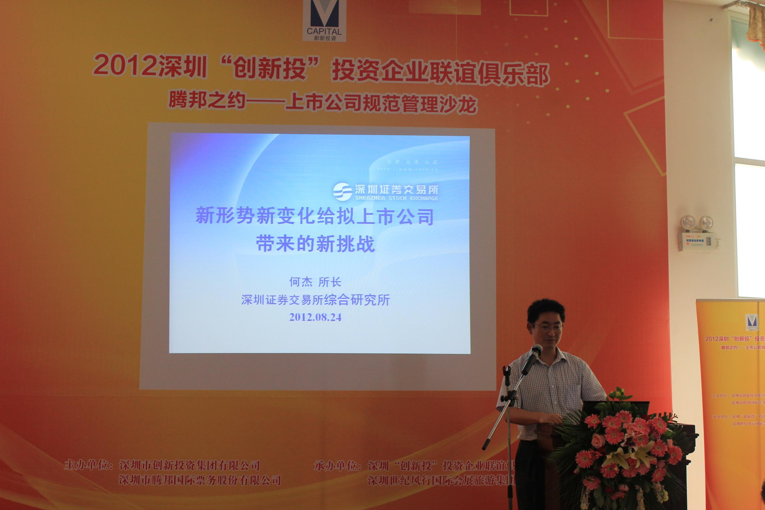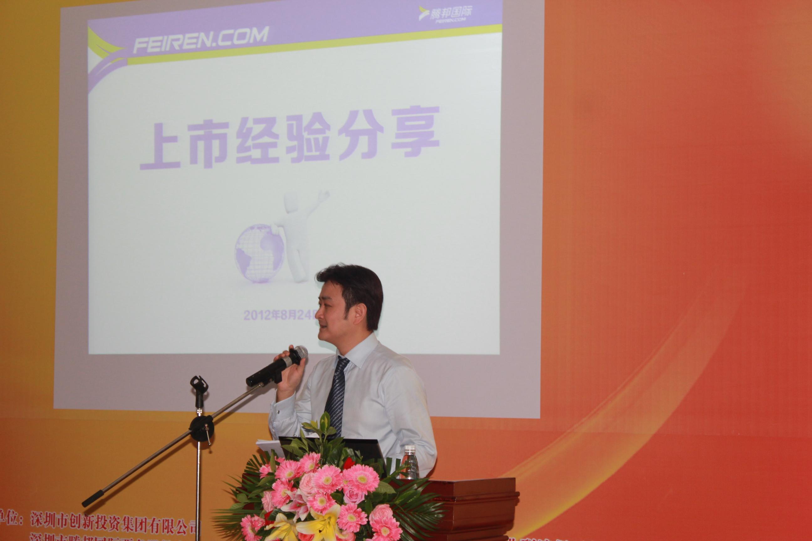 深圳2012年8月30日電 /美通社亞洲/ -- 8月24日,騰邦國際和深圳創(chuàng)新投資集團(tuán)有限公司共同組織的“上市經(jīng)驗交流會”在深圳召開,全國50多家公司、120多位高管出席了此次會議。會上,多位專業(yè)人士和企業(yè)家對全國經(jīng)濟(jì)形式變化做了分析,并對上市經(jīng)驗做了重要分享。