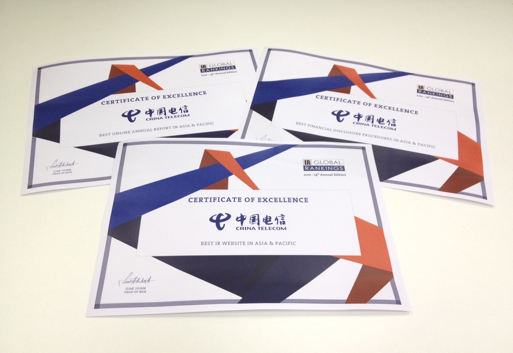 中國電信在上述評選中取得優(yōu)異成績,顯示中國電信在企業(yè)管治及透明度方面達到國際領先企業(yè)的卓越水平,并得到國際資本市場的高度認同和肯定。