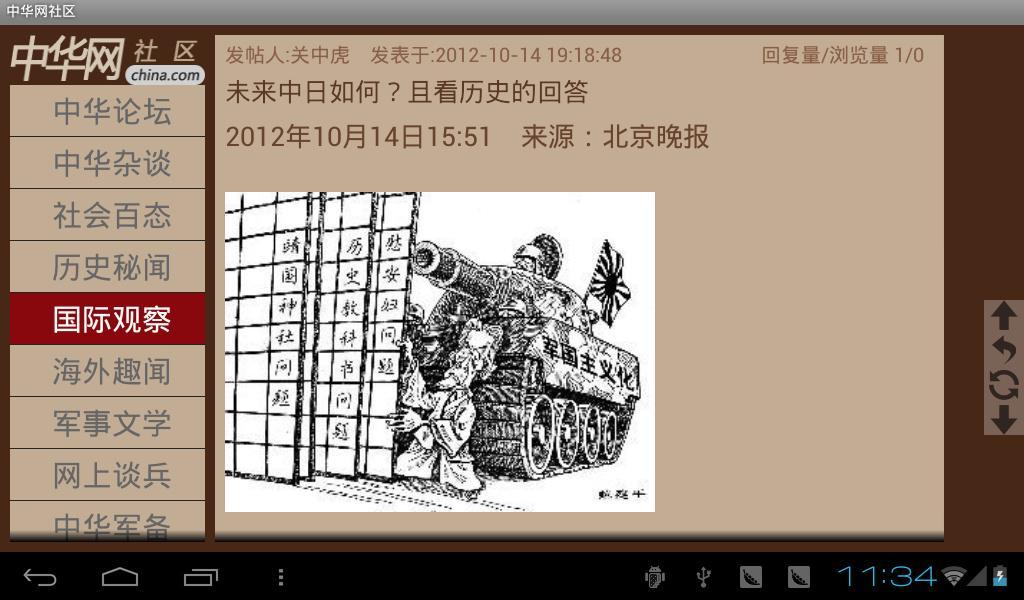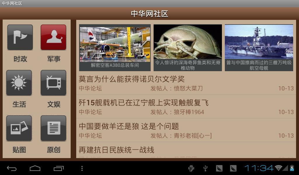 中華網社區(qū)電視客戶端(android 版)產品 http://u.china.com/android/club_tv/ 匯聚中華網精華版社區(qū)欄目的豐富資源,交互簡潔明了,內容圖文并茂,欄目分為:軍事、時政、生活、文娛、貼圖、原創(chuàng),6大版塊,覆蓋了中華網社區(qū) WEB 的精品資源,數據與官網時時同步,使電視用戶能夠同步參與到 WEB 社區(qū)的討論中來。