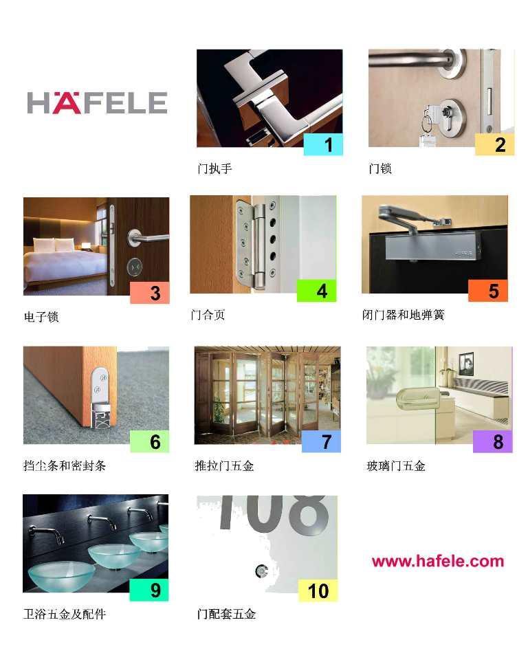 海福樂是北京銀泰中心柏悅酒店、國家博物館、北京合生霄云路8號(hào)、天津津門津塔、上海陸家嘴國金中心、杭州洲際酒店、三亞鳳凰島、深圳益田威斯汀酒店等項(xiàng)目的五金供應(yīng)商。更多信息,請(qǐng)?jiān)L問:www.Hafele.com.cn 。
