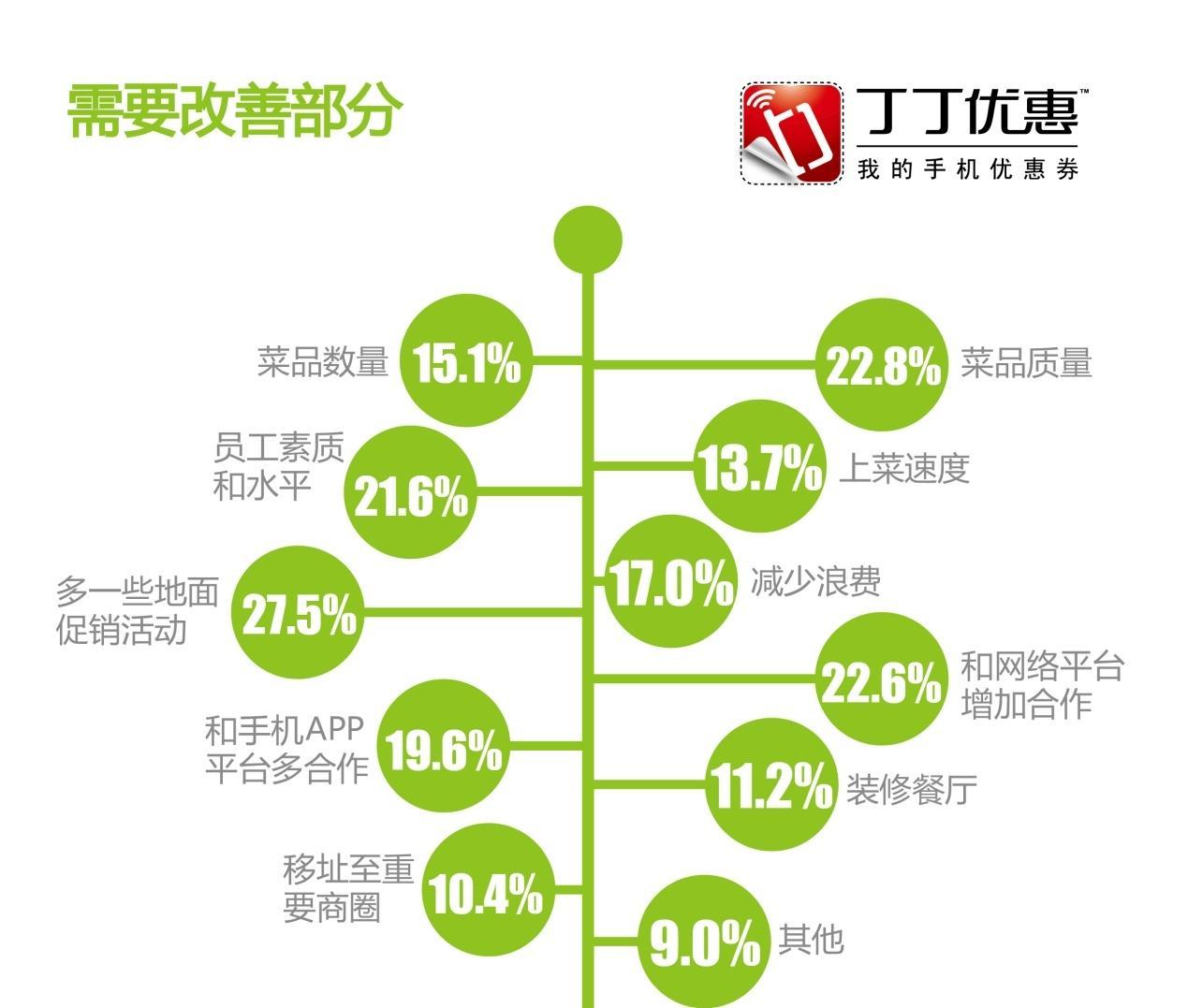改革開放34年來,餐飲業(yè)經(jīng)歷了摸索、自發(fā)、無序、競(jìng)爭(zhēng)發(fā)展,存在諸多發(fā)展中不可規(guī)避的問題,但是目前仍然是一批大型連鎖餐飲企業(yè)結(jié)合并借鑒國際化先進(jìn)管理經(jīng)驗(yàn),帶領(lǐng)中國餐飲企業(yè)走向有序、多形態(tài)并存的餐飲生態(tài)圈,而這種以少數(shù)先進(jìn)帶動(dòng)大基數(shù)中小型餐飲企業(yè)有序競(jìng)爭(zhēng)發(fā)展,需要餐飲行業(yè)協(xié)會(huì)及有關(guān)部門給予可持續(xù)的可操作性的指導(dǎo),需要強(qiáng)有力的導(dǎo)師團(tuán)隊(duì)進(jìn)行面對(duì)面的、點(diǎn)對(duì)點(diǎn)的服務(wù)指導(dǎo)。同時(shí)一批中間服務(wù)平臺(tái)也顯得尤為重要,比如丁丁優(yōu)惠這樣的手機(jī) APP 平臺(tái)去幫助餐飲商戶營銷,解決商戶短板問題。當(dāng)然,餐飲業(yè)管理者自我提升更為關(guān)鍵。