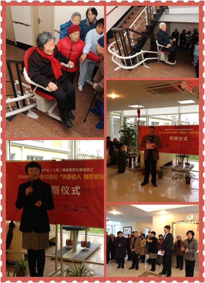 由宋慶齡基金會出資興辦的中福會養(yǎng)老院,本著“哪里急需就到哪里服務(wù)”的思想,經(jīng)過四年多的探索實(shí)踐,已經(jīng)發(fā)展成為上海代表性的養(yǎng)老機(jī)構(gòu)之一,宗旨是“把最寶貴的東西給予老人”。而作為世界上較大的座椅電梯生產(chǎn)商 -- 英國Stannah,是一家有著悠久歷史的企業(yè),一百多年來,建立起了誠實(shí)正直的聲譽(yù)和對產(chǎn)品質(zhì)量的承諾,可以說斯坦納是座椅電梯領(lǐng)域毋庸置疑的領(lǐng)導(dǎo)者。此次“關(guān)愛老人 情系銀發(fā)”捐贈活動,除了為老人日常生活提供了便捷,同時,Stannah也為中國養(yǎng)老產(chǎn)業(yè)做了一個非常值得學(xué)習(xí)的榜樣,在上海創(chuàng)建老年友好型城市的過程中發(fā)揮作用。