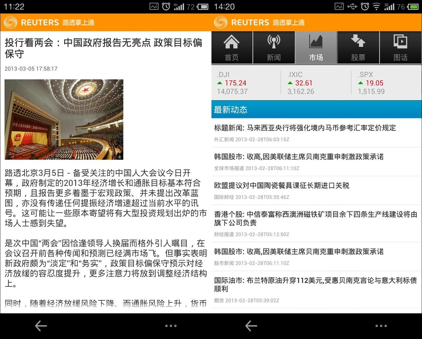 北京2013年3月11日電 /美通社/ -- 世界領(lǐng)先的智能信息及媒體公司湯森路透今日宣布,旗下路透中文網(wǎng)全新安卓中文版應(yīng)用程序正式上線。至此路透中文網(wǎng)“路透掌上通”應(yīng)用程序系列全面覆蓋主流移動操作平臺,進(jìn)一步滿足商務(wù)人士對全球財(cái)經(jīng)及市場動態(tài)資訊的實(shí)時需求。