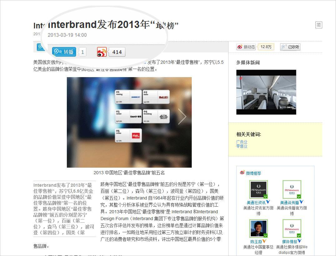 北京2013年4月9日電/美通社/-- 4月9日,美通社宣布正式完成中文網(wǎng)站的社交媒體功能升級,升級后的中文網(wǎng)站將進一步增強企業(yè)新聞稿內(nèi)容與各大主流社交媒體平臺的連接,訪問者可輕松將新聞稿內(nèi)容分享給其新浪微博、騰訊微博、人人網(wǎng)、豆瓣等社交網(wǎng)絡(luò)上的好友;“微博名片”功能的上線進一步強化了新聞稿內(nèi)容與社會化媒體的連接。