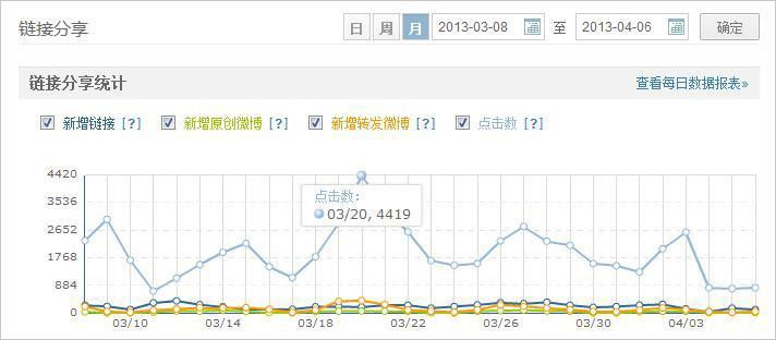 -- 平均每日產(chǎn)生數(shù)百條新聞稿微博短鏈接分享,單篇較高帶回數(shù)千次點擊