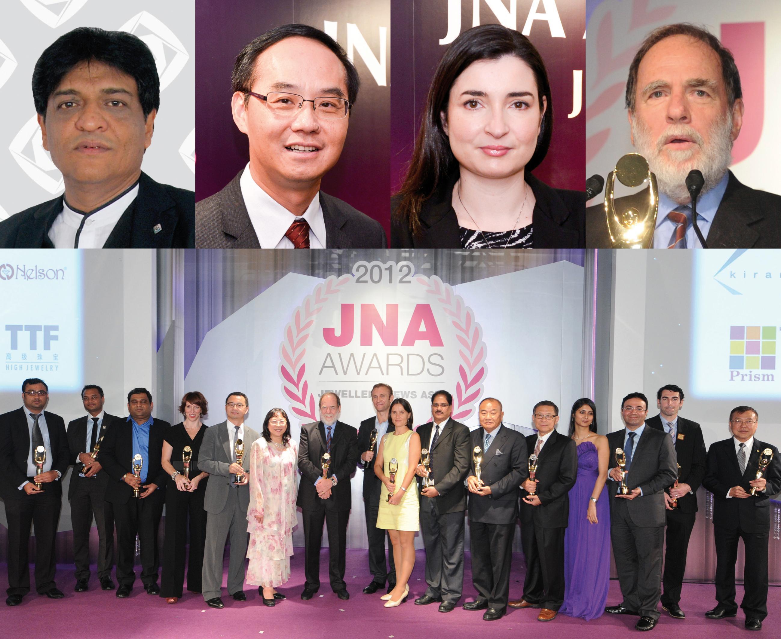首屆JNA大獎(jiǎng)?lì)C獎(jiǎng)典禮暨晚宴于2012年9月20日假香港麗斯卡爾頓酒店舉行,當(dāng)晚商賈賓客云集,吸引超過(guò)450位來(lái)自世界各地的珠寶業(yè)界領(lǐng)袖出席。10個(gè)獎(jiǎng)項(xiàng)類(lèi)別共收到超過(guò)70份的高質(zhì)素報(bào)名表格,終身成就大獎(jiǎng)?lì)C授予戴比爾斯前主席尼基.奧本海默先生。