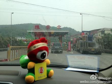 4月21日思源工程、揚帆計劃工作人員一大早乘飛機到達(dá)成都,滿載首批救援物資的車隊從成都向雅安進(jìn)發(fā),爭取把網(wǎng)友的愛心盡快傳遞出去。