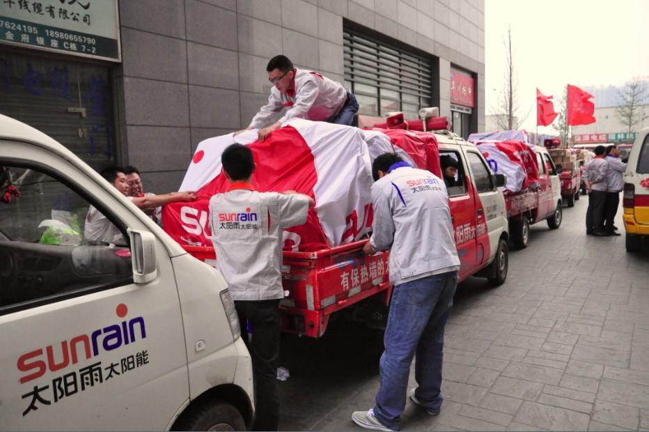 在5.12汶川地震援助經(jīng)驗基礎(chǔ)上,太陽雨公益慈善基金第一時間啟動應(yīng)急預(yù)案,調(diào)用內(nèi)外部資源,第一時間通過太陽雨終端銷售渠道采購首批帳篷、水、食物等,目前該批物資已運抵震區(qū)。同時,春夏之交,災(zāi)后創(chuàng)傷容易感染,太陽雨公益慈善基金緊急從北京藍戈藥業(yè)采購了一批易折清潔消毒棒(70%-75%乙醇溶液),共10萬支,這批便捷醫(yī)療輔助用品目前正在運往震區(qū)的途中。另外,太陽雨公益慈善基金將捐款1000萬元,用于支持震區(qū)急需物資的采購、太陽能生活熱水系統(tǒng)以及太陽雨陽光浴室的建造等項目。