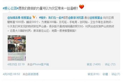 據(jù)前方消息,為了給專業(yè)救援隊(duì)和醫(yī)療救護(hù)車讓出生命通道,通往寶興和蘆山災(zāi)區(qū)的道路正在實(shí)行交通管制,由于不能及時(shí)進(jìn)入災(zāi)區(qū),志愿者又不能私自行動(dòng),由39位蒙牛志愿者組成的抗震救災(zāi)小分隊(duì)被安排在接受災(zāi)民較大的醫(yī)院雅安市第二人民醫(yī)院、解放軍第37醫(yī)院,全面配合救災(zāi)后勤醫(yī)護(hù)工作。