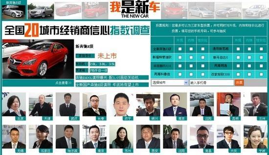 20城市聯(lián)動,鳳凰汽車聯(lián)合全國城市站連續(xù)8天不間斷開展“上海車展新車全國經銷商信心指數調查”活動,選取8款重點上市新車,對全新奔馳E級、通用新君越、新福特蒙迪歐、新馬自達6、豐田新RAV4、兩廂朗逸、兩廂科魯茲、改款標致308等,借助全國各地經銷商對新車的預計銷量數字,從而窺見該新車在全國各地的被接受度。