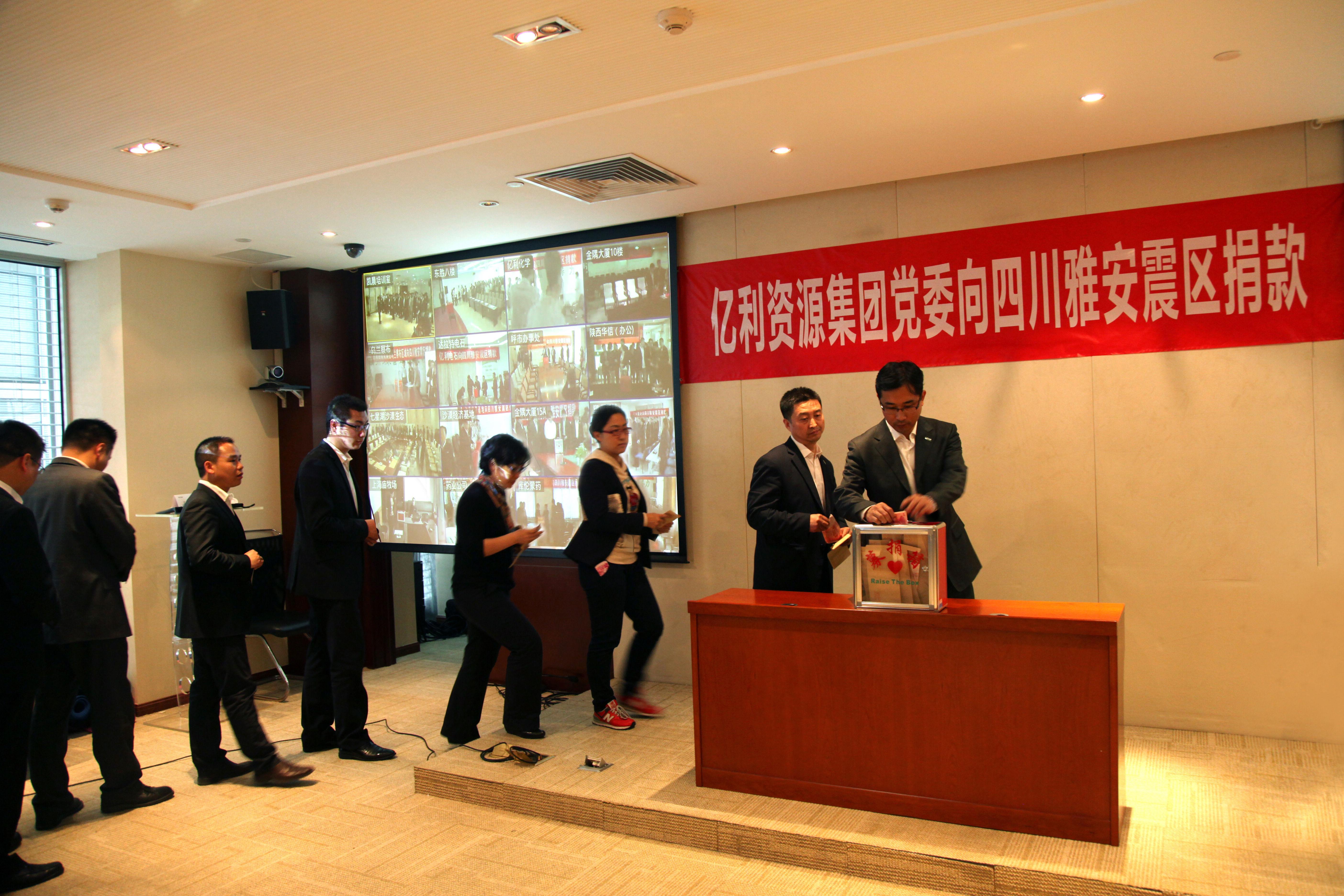 當(dāng)日,億利公益基金會(huì)捐款200萬(wàn)元,公司全體職工通過(guò)二十多個(gè)視頻點(diǎn)分別在經(jīng)營(yíng)生產(chǎn)一線和沙漠生態(tài)種植地區(qū)捐款285295.3元,共籌集善款2285295.3元。這筆捐款將通過(guò)中國(guó)光彩事業(yè)基金會(huì)第一時(shí)間捐贈(zèng)給雅安災(zāi)區(qū)。