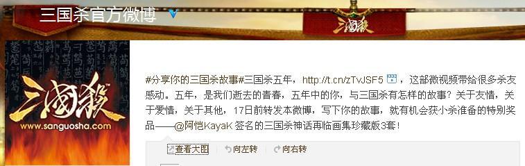 《三國殺》五周年微電影地址:http://v.youku.com/v_show/id_XNTMyMTEyODQ0.html