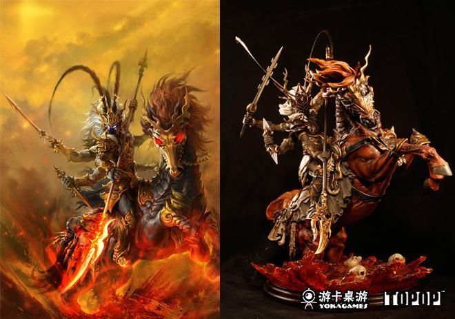 神呂布新版原畫邀請國際知名游戲原畫美術(shù)師“干橘子”親繪,六臂神呂布手持三大法器,身騎戰(zhàn)馬赤兔,浴血廝殺于煉獄戰(zhàn)場之上,如此精美震撼的畫面經(jīng)由TOPOP合作的國際一流原型師團(tuán)隊(duì)“末那”將其立體呈現(xiàn)。從原畫繪制、造型設(shè)計(jì),直到選材上色,歷經(jīng)一年多的反復(fù)構(gòu)思與精雕雕琢,在高度還原角色形象的同時(shí),將呂布獨(dú)特的內(nèi)在性格和精神詮釋到極致,至此,猶如戰(zhàn)神附體般的神呂布手辦誕生了。浴血的戰(zhàn)神呂布與幽冥赤兔的完美組合,注定成就史上武力較強(qiáng)悍、造型最拉風(fēng)的武將。